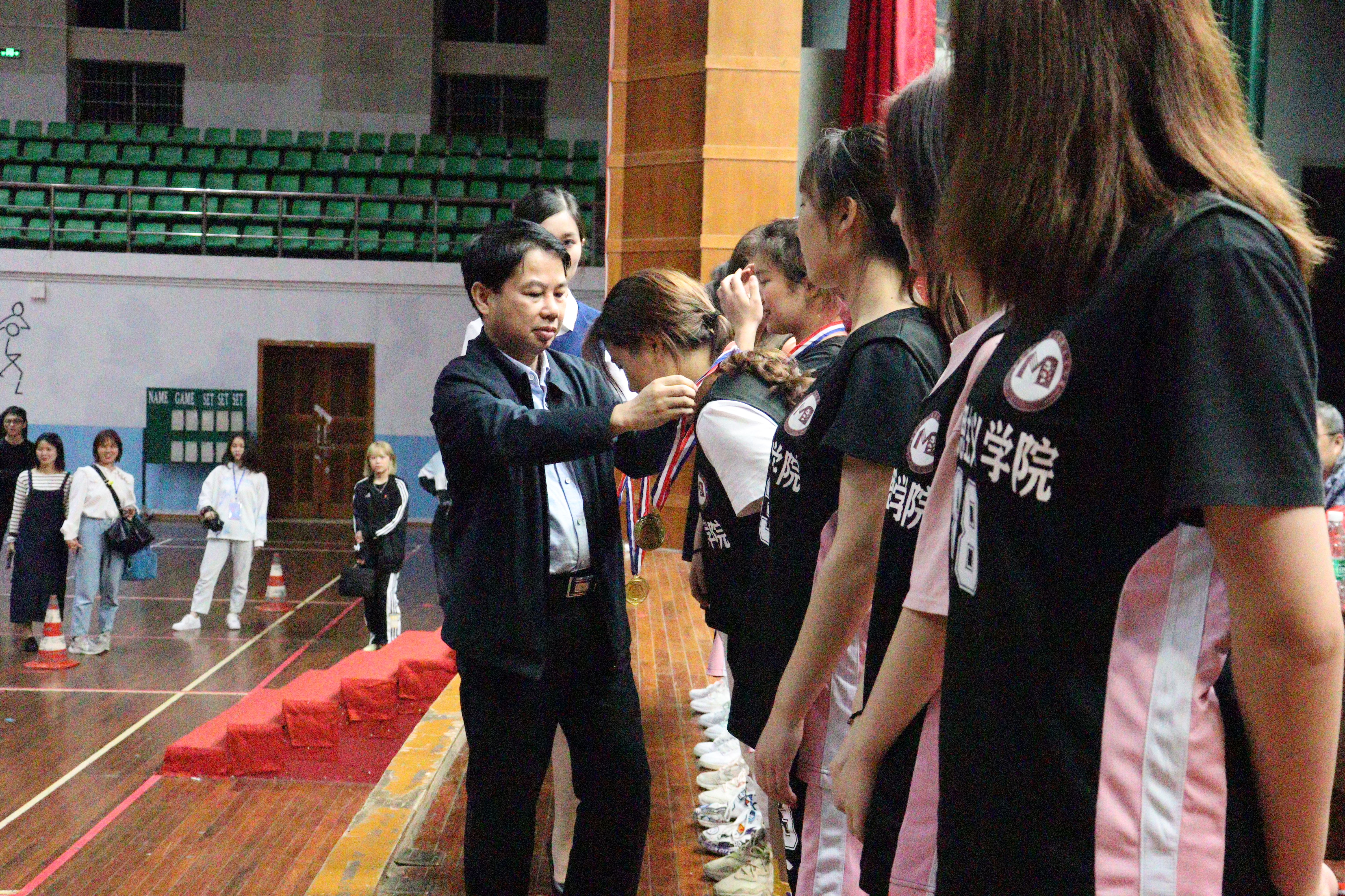 本网讯 5月18日晚,我校第九届篮球联赛在体育馆圆满闭幕。党委委员、副校长李常健,体育学院院长谢欢、体育学院党总支书记陈泽顺、赛事裁判长李俊为获奖团体颁奖。