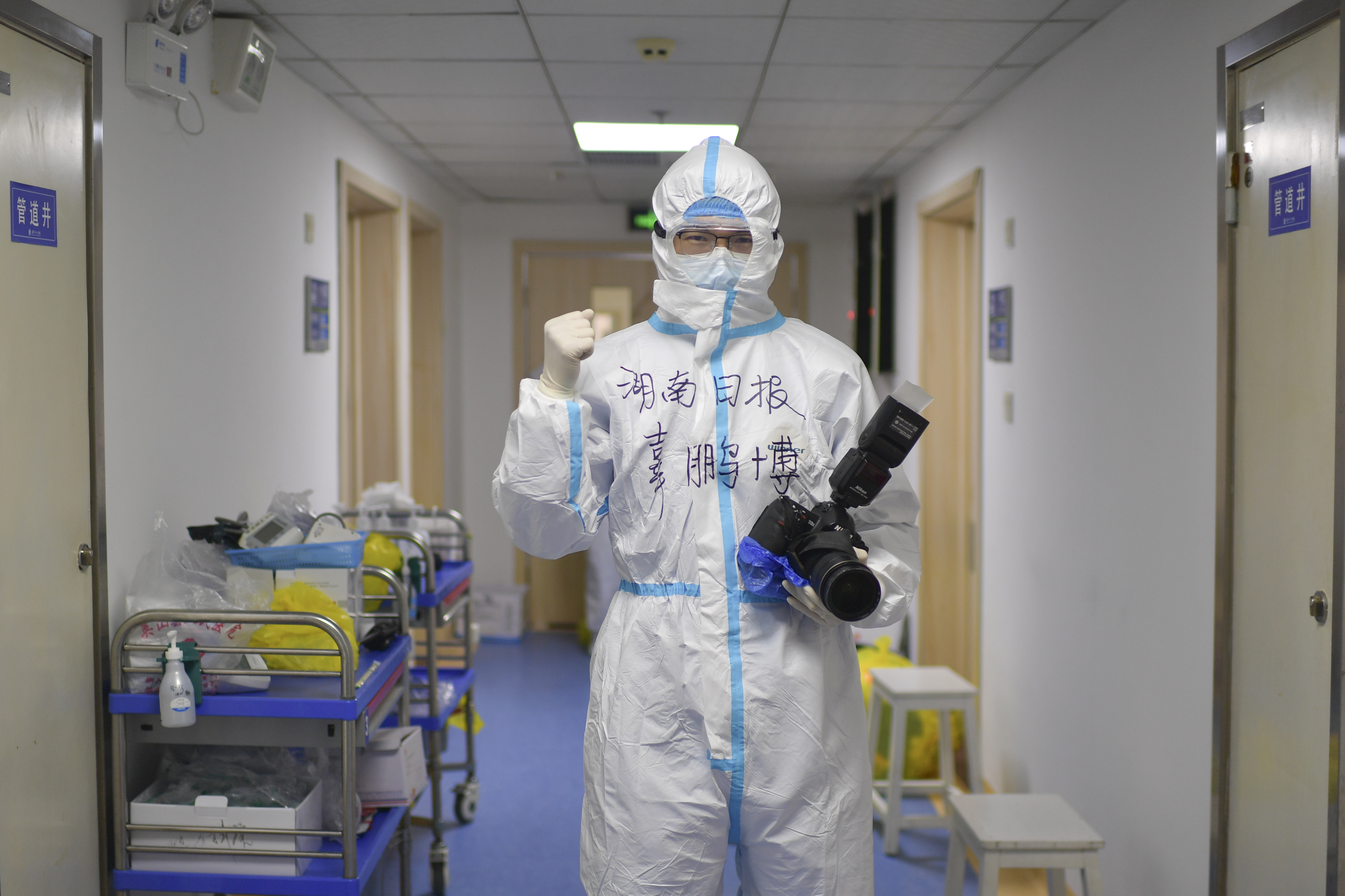 辜鹏博是我校传媒学院广播电视学2009届毕业生,现为湖南日报新闻影像中心记者。疫情期间,他深入疫区,特别是在湖北黄冈抗疫一线,多次进入ICU,数十次进入半污染区采访,用手中的相机记录自己在“疫”线的每一天。