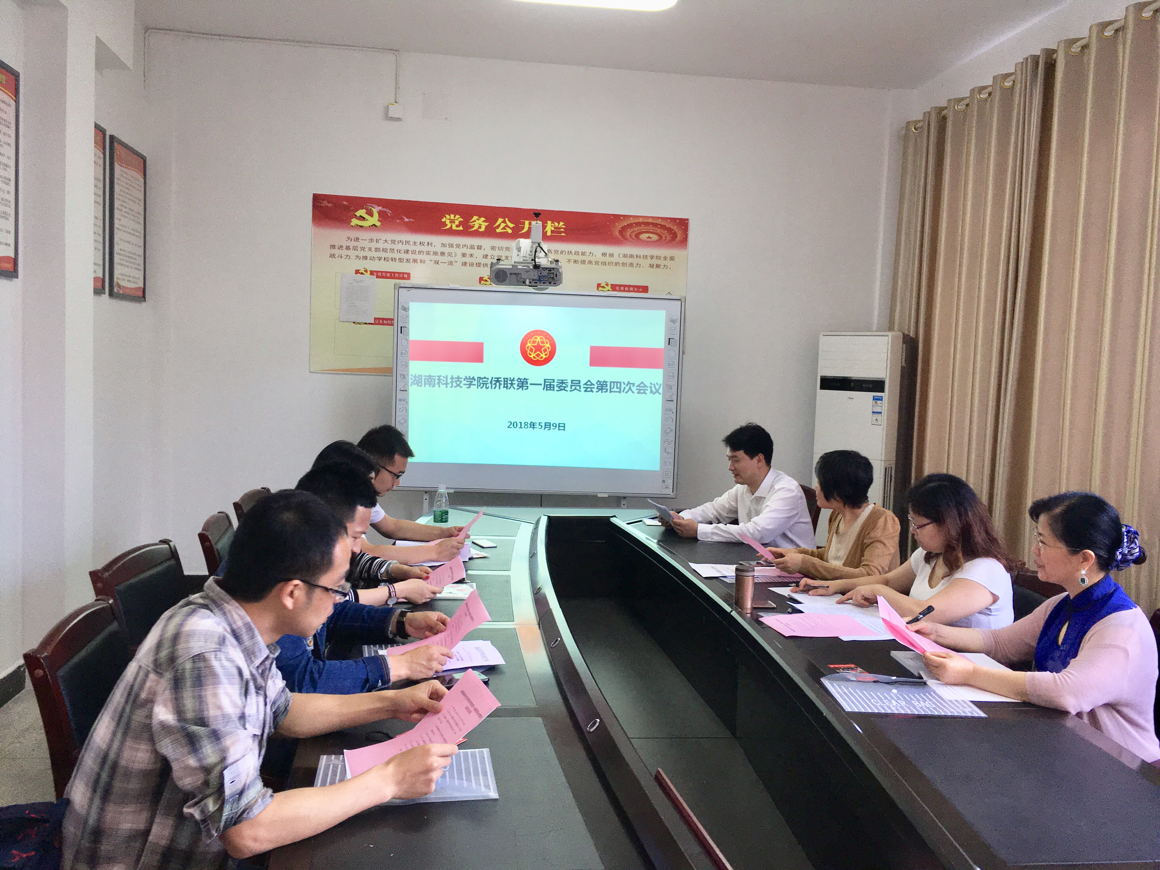 本网讯 5月9日,学校侨联召开第一届委员会第四次会议,省侨联特聘委员、零陵区侨联副主席罗映红出席,学校侨联主席万李主持会议,全体委员参加。