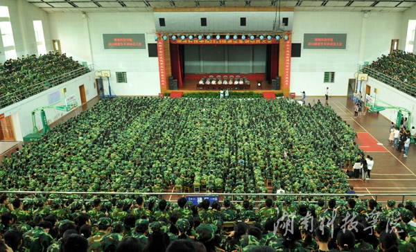 副校长程智开在讲话中指出,军训,是大学生活的第一课,大家要以饱满的精神风貌和积极的学习态度开启大学生活。他与同学们回顾了9月3日我国举行的纪念抗日战争胜利暨世界反法西斯战争胜利70周年阅兵式,他寄语同学们要提高思想政治觉悟和国防意识,发扬优良传统和革命精神,敢于担当,勇于作为,以高昂的斗志,坚定的信念,必胜的决心,创造更加美好的明天。