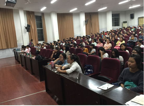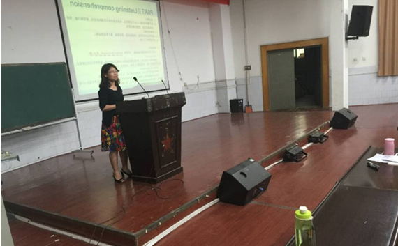 随后,14级综合英语老师郭旭明给同学们作2016年英语专四题型改革解读。她分别从听力、阅读、完形填空、作文等模块分别给同学们介绍自己在多年传授备考专四的经验,让同学们对专四考试的方向有更加明确的认识。
