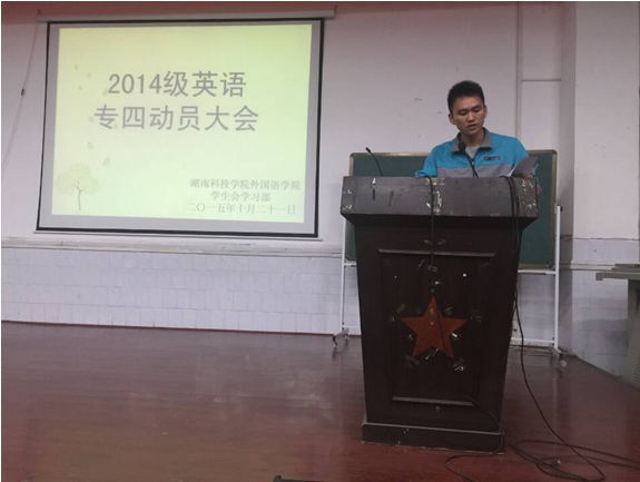 此次英语专业四级考试动员大会为2014级全体英语专业学生的专四备考起到了很好的指导作用,相信在老师的帮助与指导下,在同学们的共同努力下,14级的专四考试成绩一定会更上一个台阶!