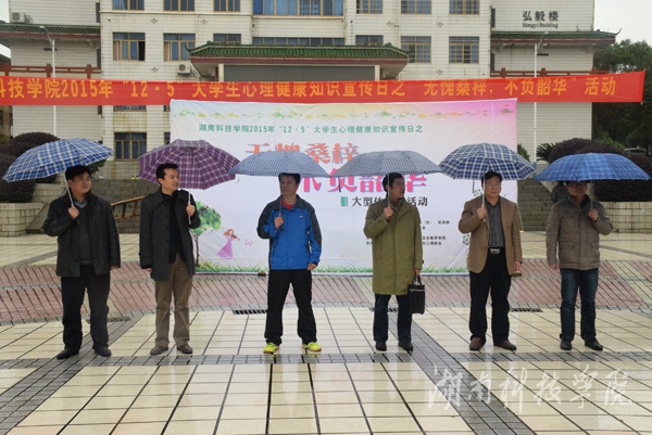 本网讯 12月5日上午,由学工部、团委、教务处主办,大学生心理健康教育中心及各教学学院承办的2015年大学生心理健康知识宣传日之“无愧桑梓,不负韶华”在文化广场举行,近千名同学参与到各项活动中。副校长吴小林、程智开及学工部部长唐华山莅临现场。