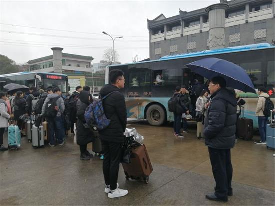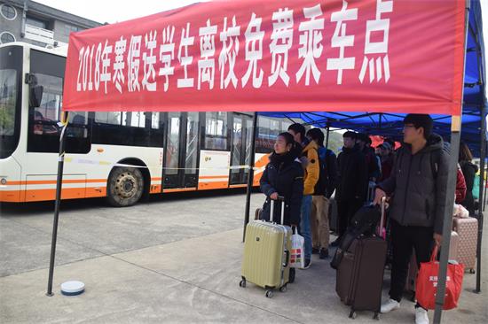 本网讯(胡敏辉邓强左璐瑶)寒假来临,春节将至,天行平台_天行(中国)党委高度重视学生安全离校工作。2018年1月20日至1月24日,特租用公交巴士免费送学生至冷水滩火车站、汽车站,情暖学子回家路。