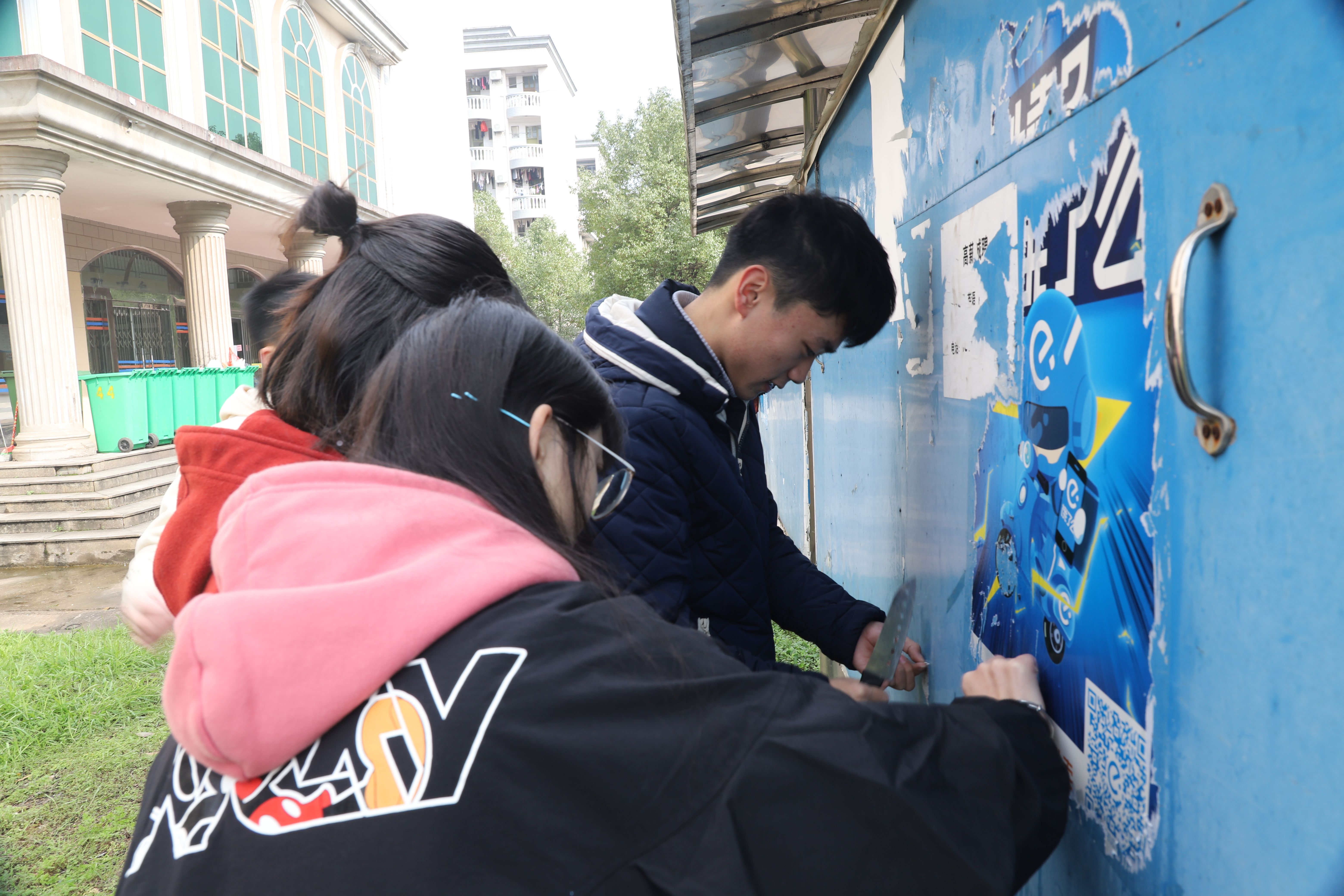 为弘扬雷锋精神,美化校园,3月10日,学工部组织学生干部开展了以清除宿舍区域的“牛皮癣”为主题的义务劳动,经过一天的努力,宿舍区域的各种牛皮癣已经被清除干净。