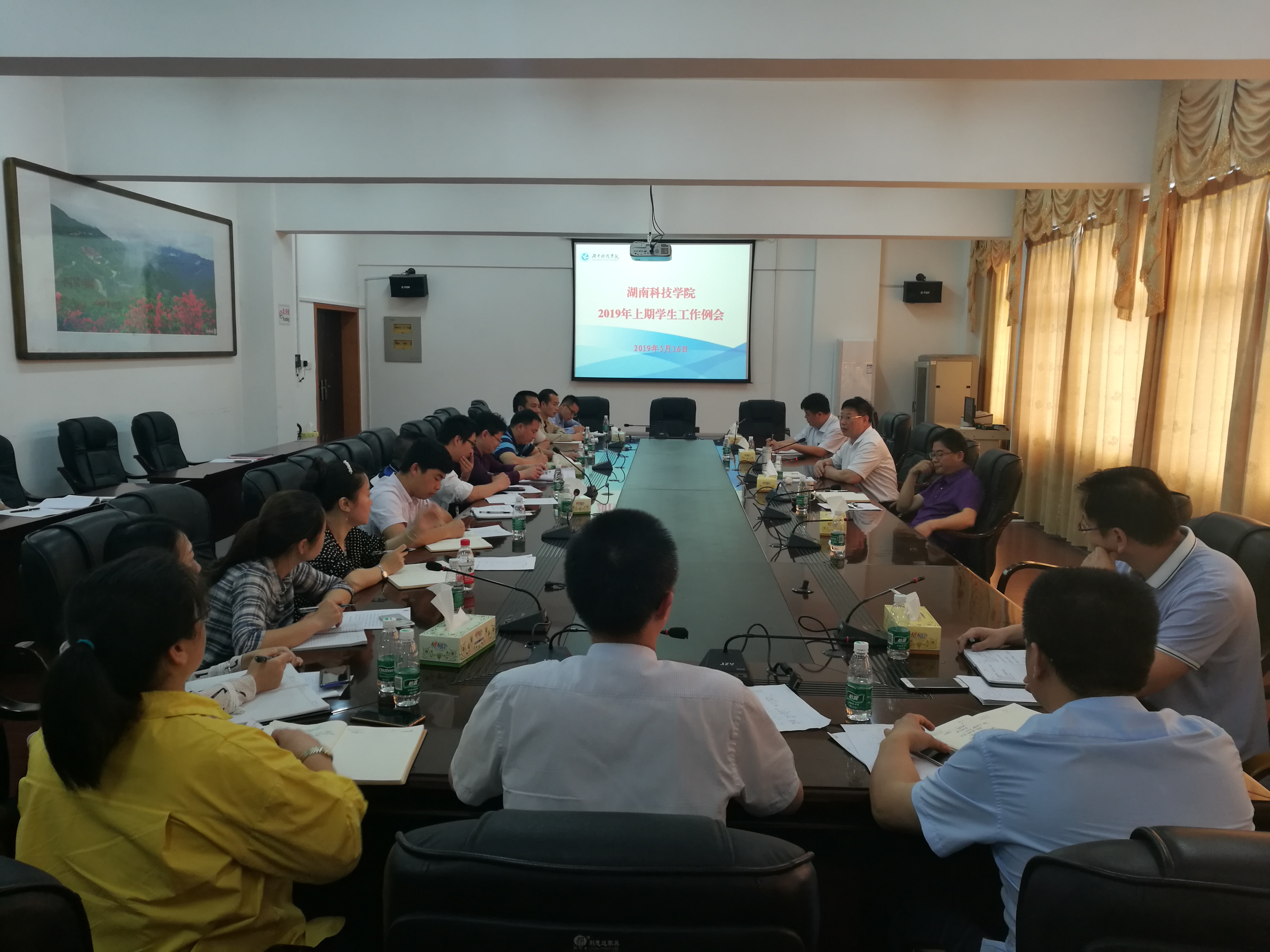 本网讯5月16日上午9点,学校在行政办公楼六楼会议室召开2019届毕业生离校工作协调会。校党委委员、纪委书记彭立威出席并讲话,党政办、组织部、宣传统战部、学工部、教务处、就业创业指导中心、保卫处、团委、图书馆、后勤服务总公司、教师教育学院、档案馆的部门负责人,各教学学院党总支副书记参加。