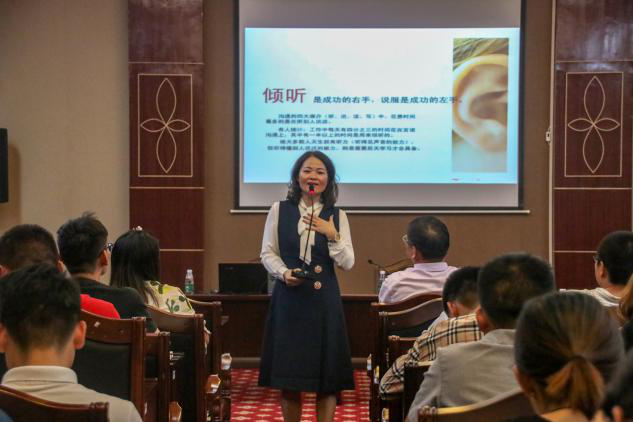 本网讯(通讯员:张晶晶林欣)为进一步加强新形势下大学生思想政治教育工作,切实加强我校辅导员队伍建设,提高辅导员工作能力,9月22日晚上7点30分,学工部组织全体辅导员老师在行政楼八楼三会议室开展专题学习培训,此次学习培训特别邀请到荣获2019年全国优秀教育者等称号的杰出校友——中南林业科技大学心理主任袁红梅博士,袁老师以《赢得人心的艺术——辅导员谈心谈话技术》为题,为在场老师带来了一堂生动而深刻的专题报告,讲座由学工部长唐华山教授主持,各学院党总支副书记、辅导员参加。