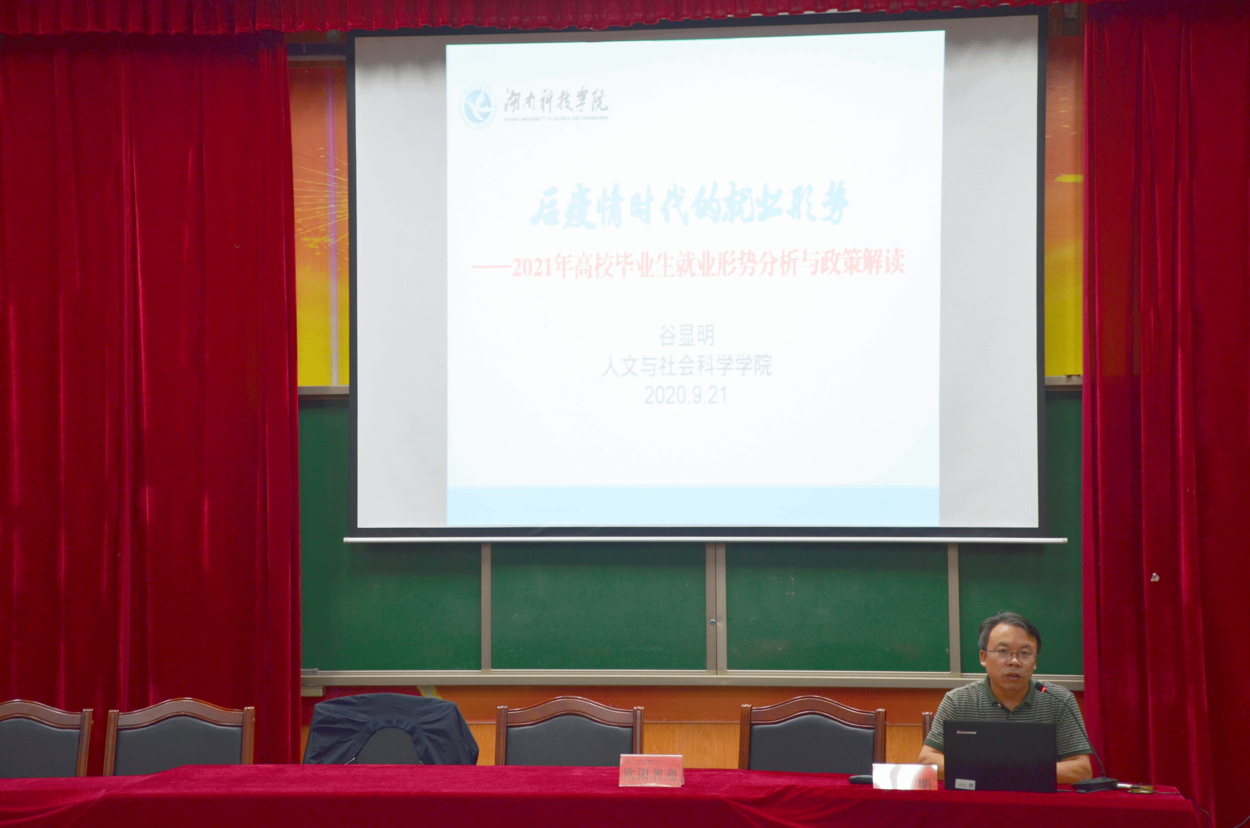 会上,院党总支书记谷显明做了主题为《后疫情时代的就业形势》就业形势报告,他建议毕业生同学们一是要树立科学的就业观,不仅要“先就业再择业”,更应该适时的调整个人就业目标和就业期望,务必把握应届毕业初次就业“关键时机”;二是要及时掌握党和政府的各项就业政策,积极准备创业和参与基层服务;三是要加强学习,持续提升自身能力,增强个人就业竞争力;四是要善于自我调节,正确看待就业过程中的成功与失败。他还鼓励即将走上实习岗位的毕业生们要做到“三多”也就是,多思考,多学习,多实践;实现“三高”,也就是高标准、高要求、高质量。向社会、向自己交一份满意的就业答卷。