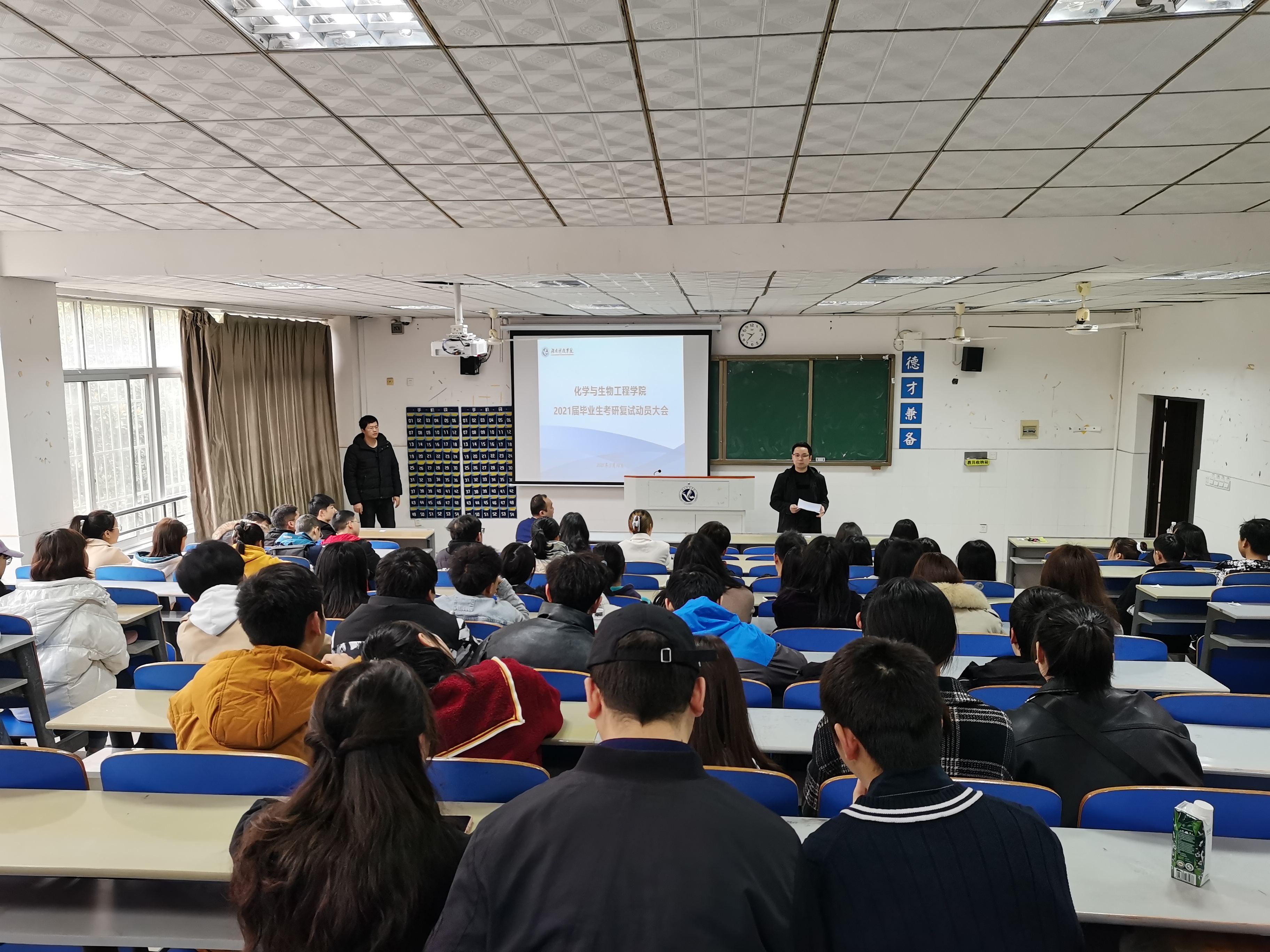 3月14日上午,化学与生物工程学院2021届毕业生考研复试动员大会在逸夫楼323教室举行。院长刘小文、党总支书记曾二青、副书记任学兵出席会议。