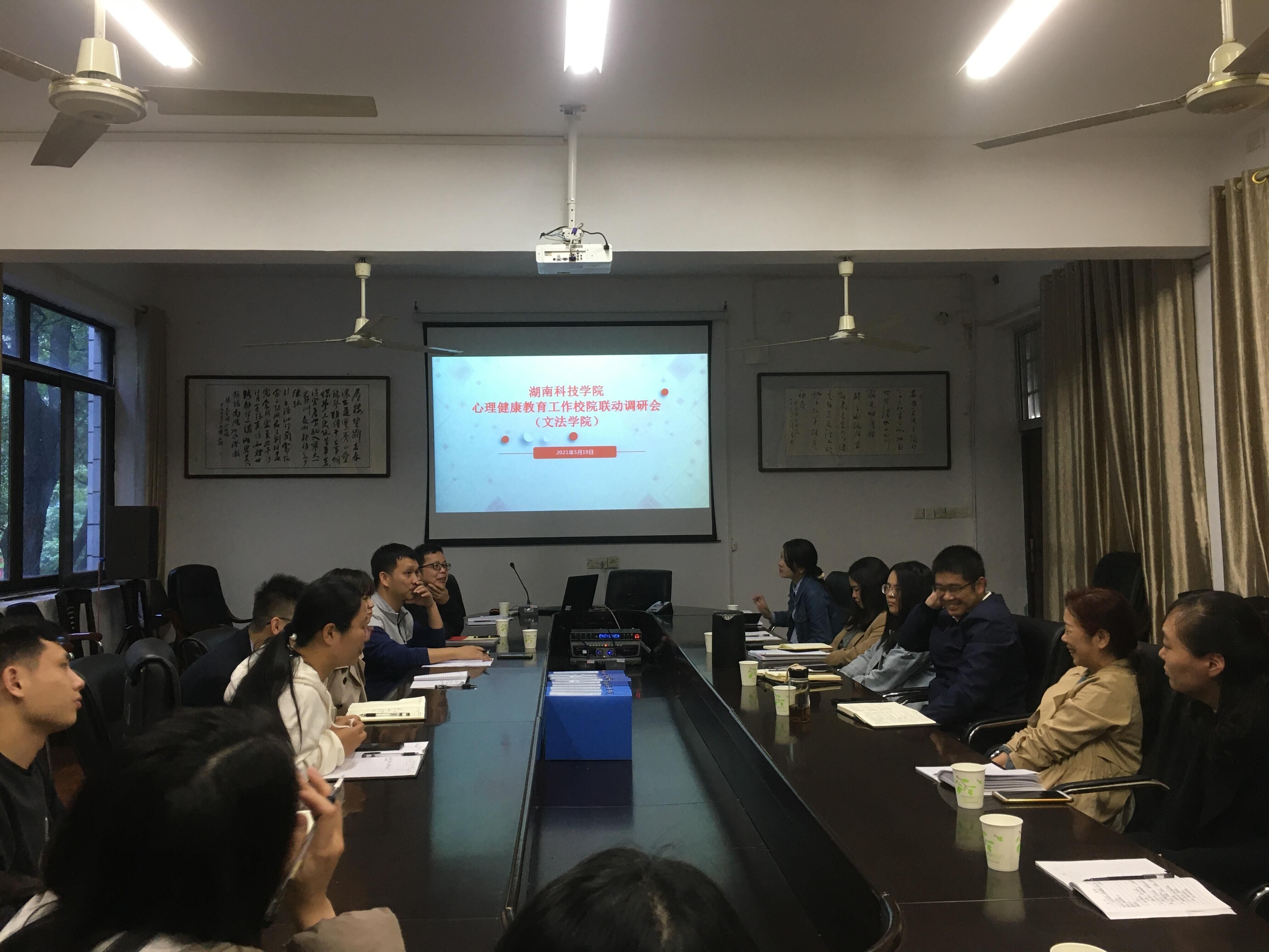 2021年5月19日下午,大学生心理健康教育中心专职咨询师林静教授、涂巍老师一行到文法学院开展“校院联动,探索心理健康教育新模式”交流活动,各学院心理专干代表、班主任代表参加了活动。