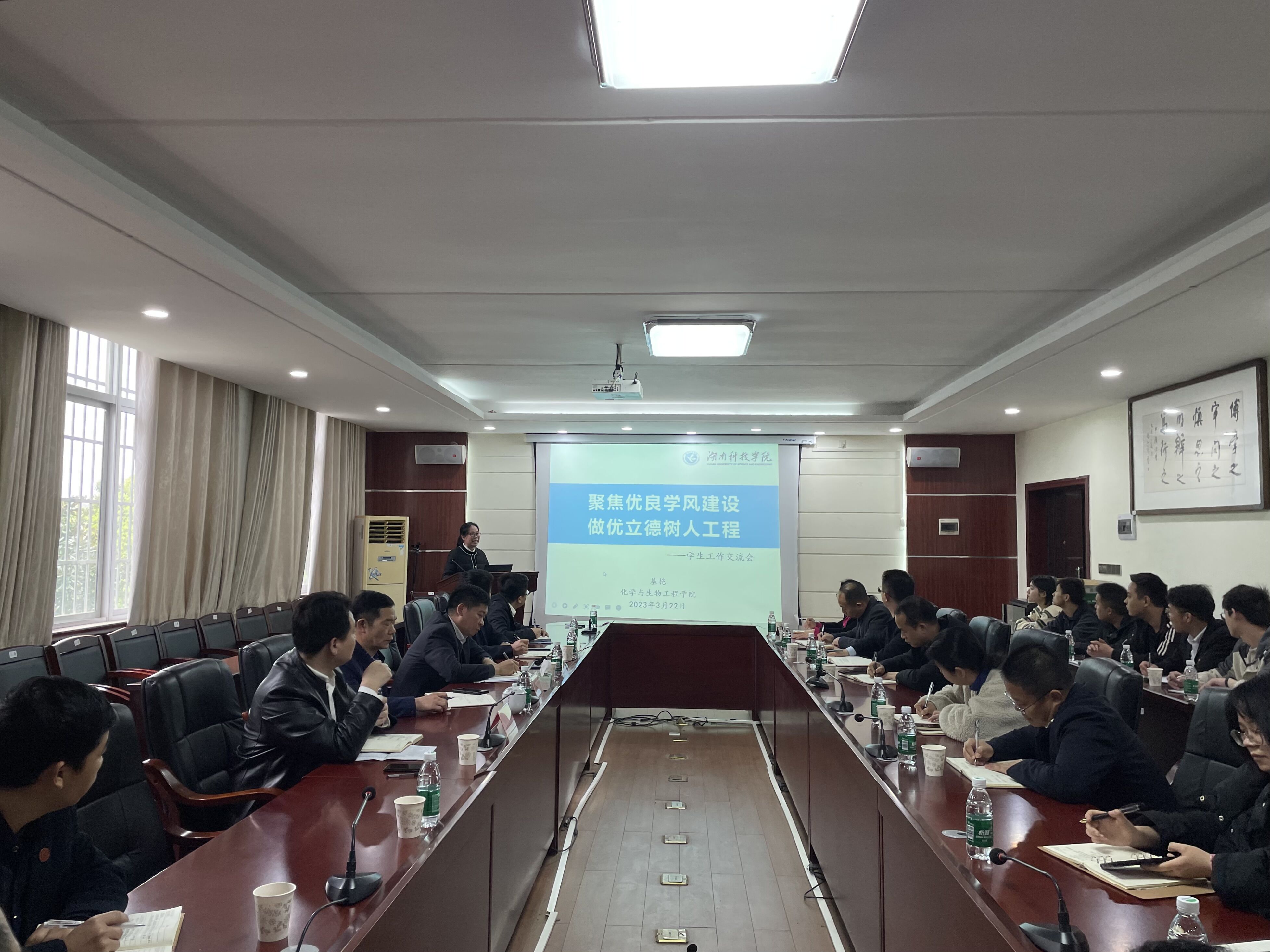 谷利民介绍新进辅导员及其具体分工情况,并对新入职辅导员表示热烈欢迎。化学与生物工程学院党总支副书记基艳和理学院2019级辅导员赵江南分别作了交流发言。基艳围绕“聚焦优良学风建设,做优立德树人工程”主题分享了该院狠抓学风建设的具体举措,并对进一步加强学风建设、增强学生宿舍人际关系提出了思考。赵江南对学风建设和考研工作进行了经验分享,并总结分享了自身的工作经验。校团委书记、学工部副部长万李和学生工作部副部长胡敏辉分别就开学以来的重点工作进行了回顾,对工作中发现的一些问题进行了通报,并对即将开展的工作进行了部署安排。