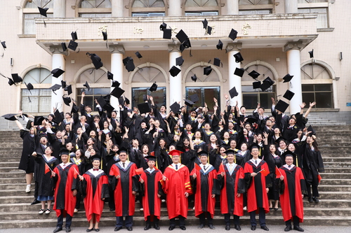 学位授予仪式上,全体校领导为毕业生拨穗,颁发毕业证书,并与毕业生合影留念,为他们的大学四年划上了圆满的句号。