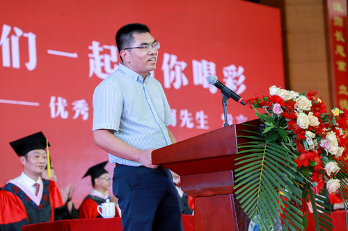 旅游与文化产业学院院长黄渊基代表学校全体教师为2023届全体毕业生送上最真诚的祝福。他希望毕业生怀抱理想、认真学习、努力工作、热爱生活,拒绝躺平、迎难而上,翻越一座又一座“浪浪山”,重整爱的行囊,奔赴新的远方!