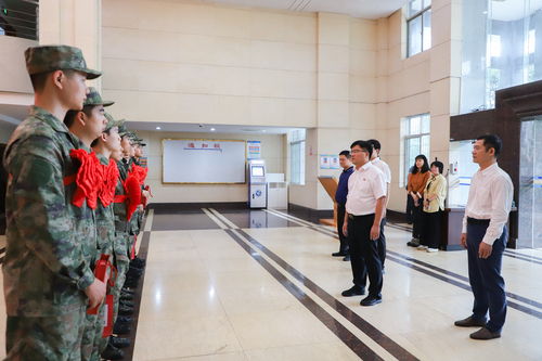 本网讯9月14日,学校举行2023年大学生应征入伍欢送仪式。党委书记李钢,副校长吴小林为入伍新兵送去祝福,并赠送入伍纪念品。