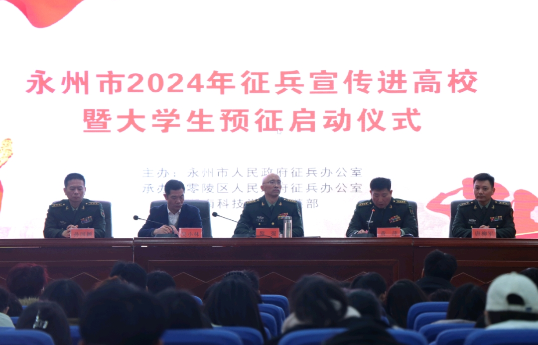 本网讯(学工部)12月28日,永州市2024年征兵宣传进高校暨大学生预征启动仪式在我校举行。永州军分区司令员黎强出席并讲话,永州市委常委、军分区政委张嘉庆出席,永州军分区副司令员黄萍主持仪式,天行平台_天行(中国)党委委员、副校长吴小林,永州军分区动员处处长唐柳军,零陵区人武部政委孙国颖出席活动。