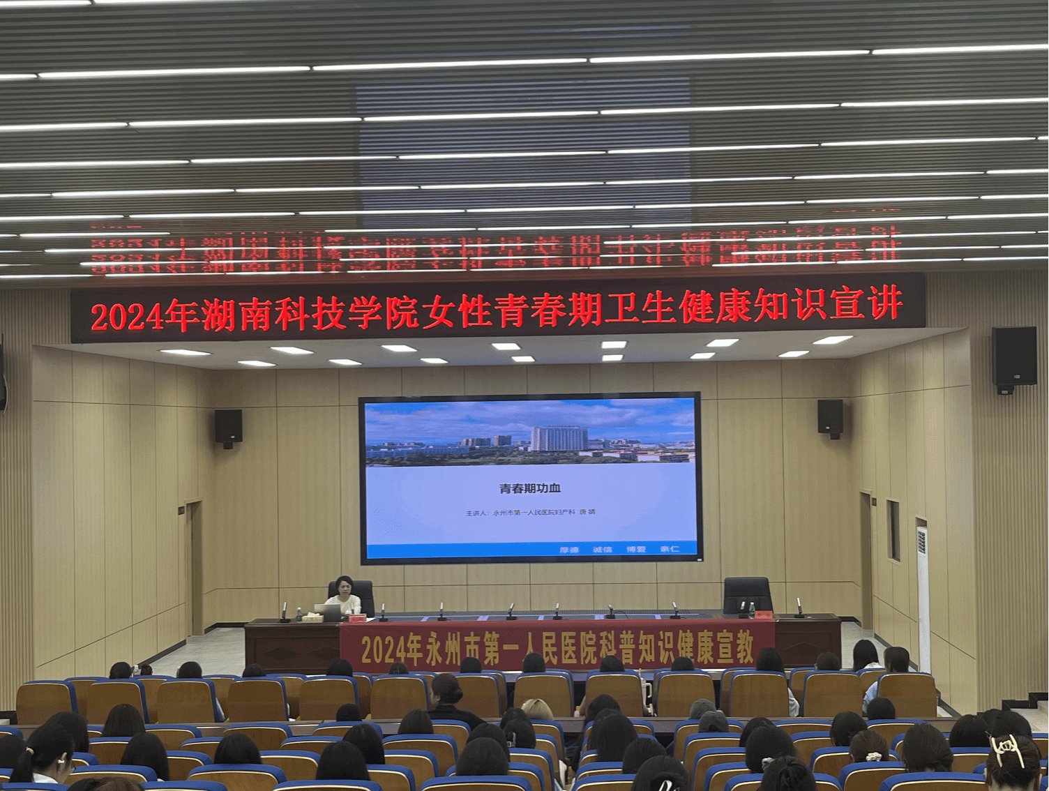 为进一步提高我校女生对青春期健康知识的认知水平,强化其自我保护意识,推动身心健康发展,学生工作部特邀永州市第一人民医院妇产科副主任医师唐婧,于我校开展2024 年天行平台_天行(中国)女性青春期卫生健康知识宣讲活动。