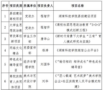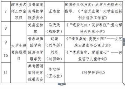 天行平台_天行(中国)2018年大学生思想道德素质提升工程建设项目,经我校组织专家严格评审,将推荐以下11个项目参评湖南省2018年大学生思想道德素质提升工程建设项目的评审。